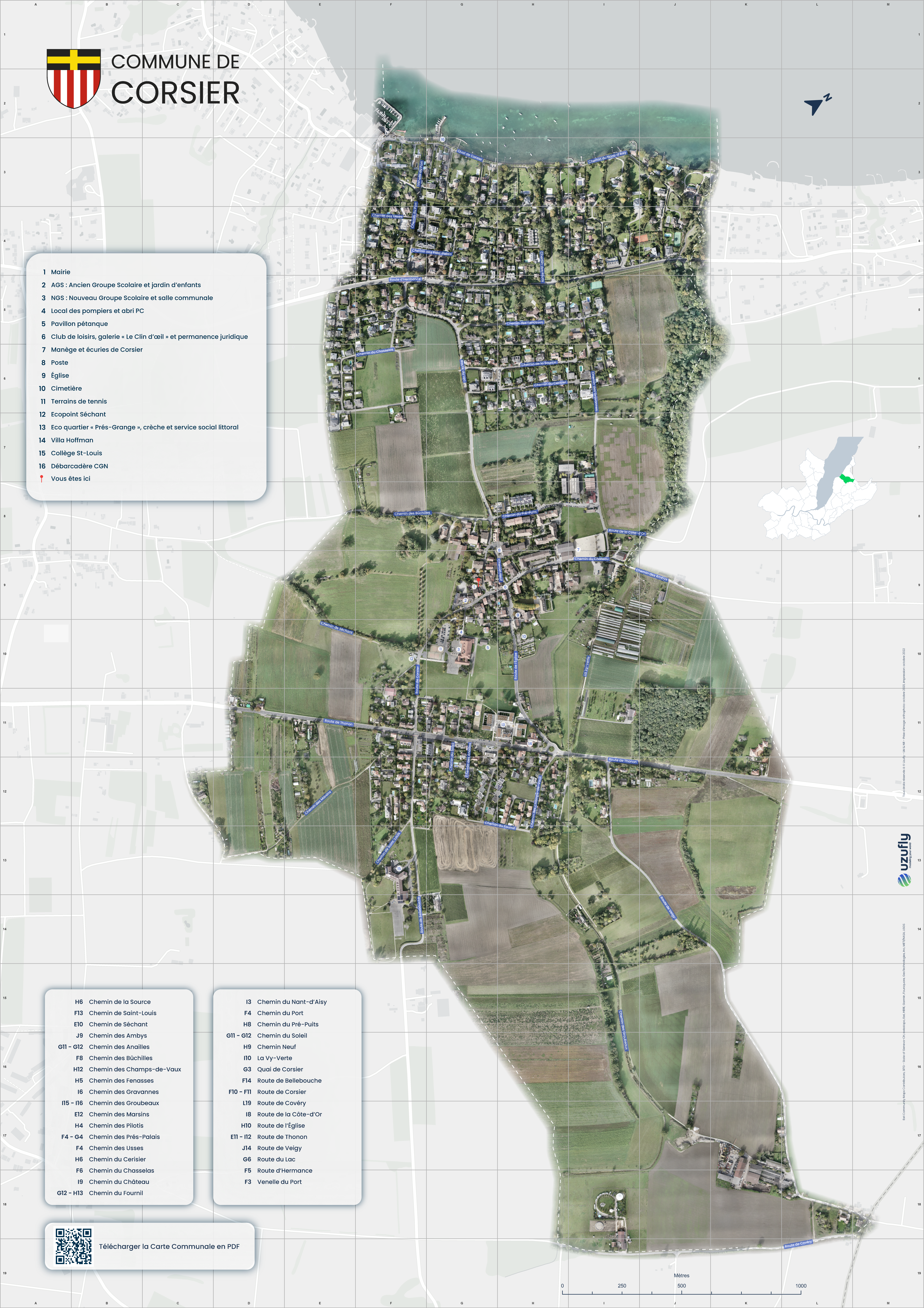 Carte de la commune de Corsier (disponible également en téléchargement en bas de page) :